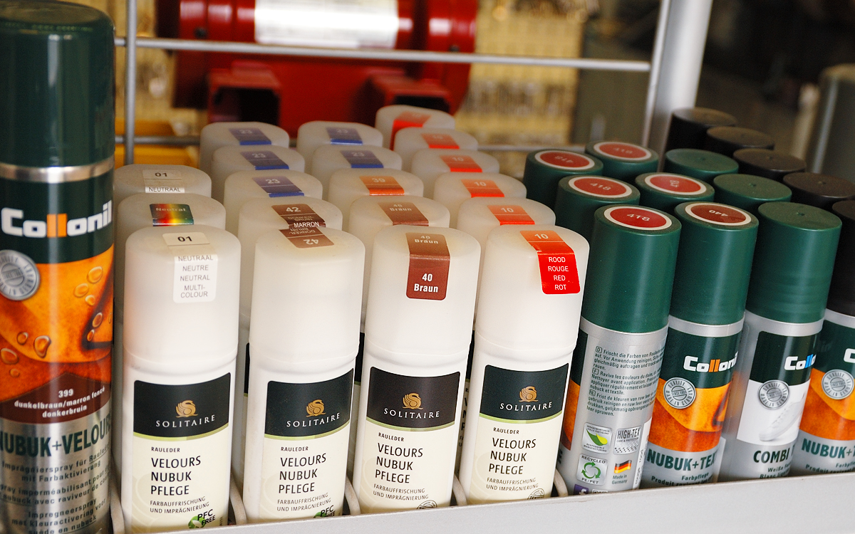 Wir reparieren Ihre Schuhe und bieten Ihnen passende Pflegemittel.